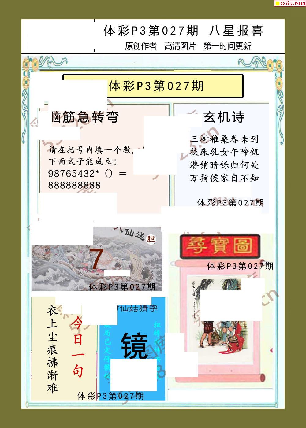 八星报喜027期体彩p3图谜