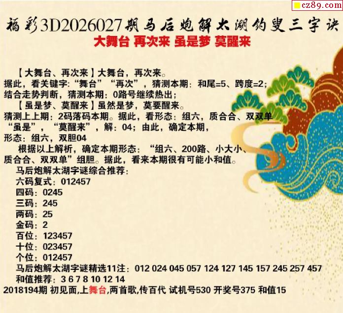 027期真实谎言解析太湖3D字玄机 虽是梦