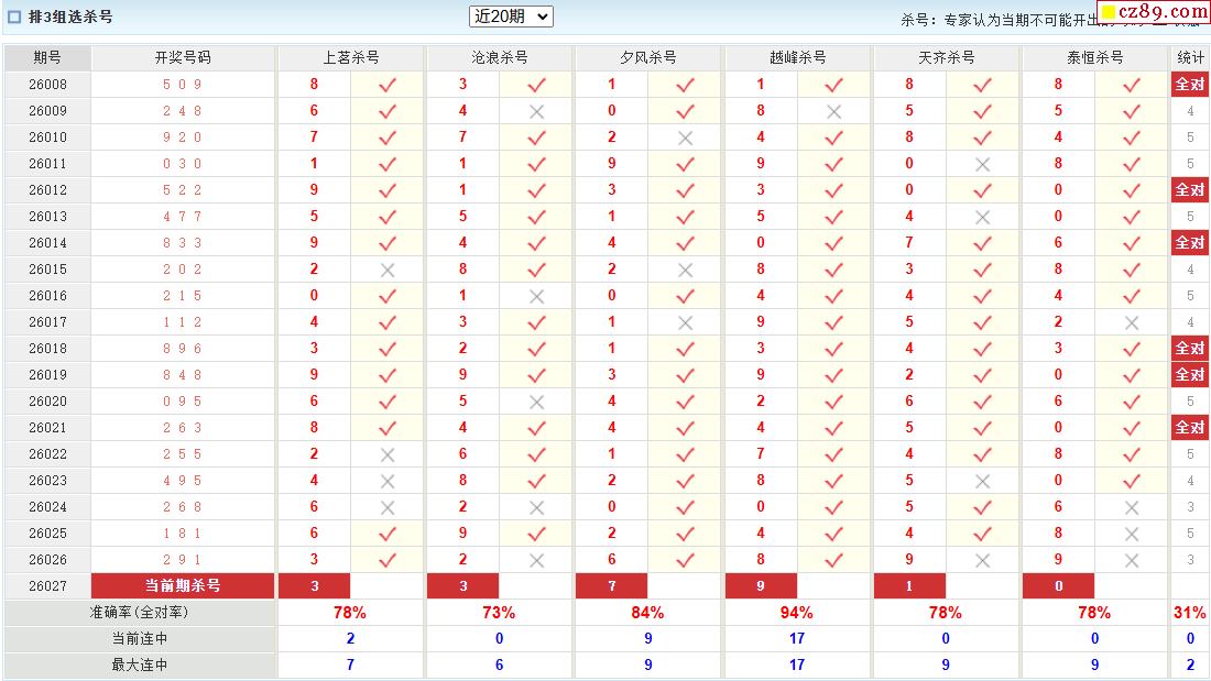 26年027期澳客专家体彩P3杀号定码推荐