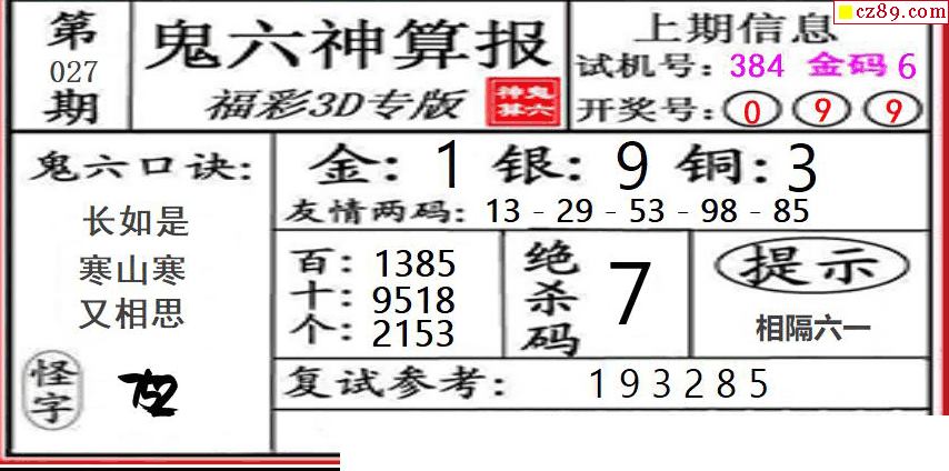 鬼六神算2026027期3d图谜