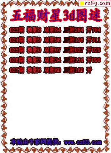 2026027期3D图谜汇总(一)
