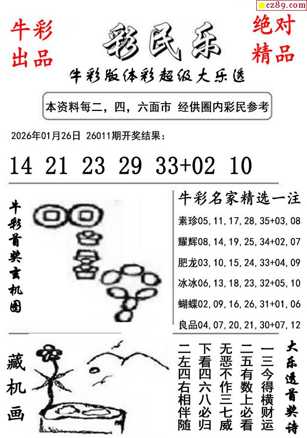 大乐透012期牛彩特邀专家前区后区杀号定胆图表