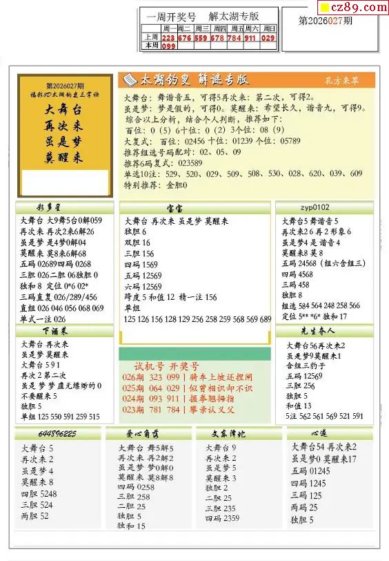 2026027期解太湖3d字图迷汇总报