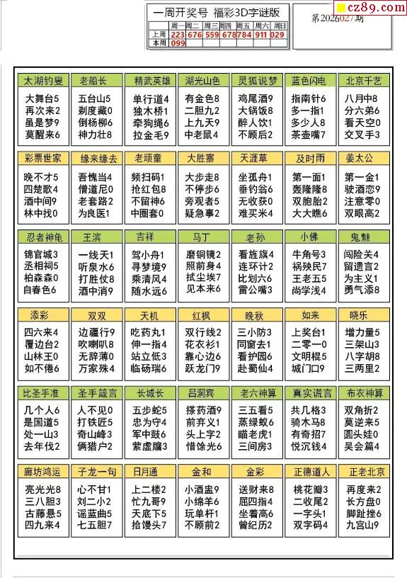 2026027期福彩3D图谜汇总