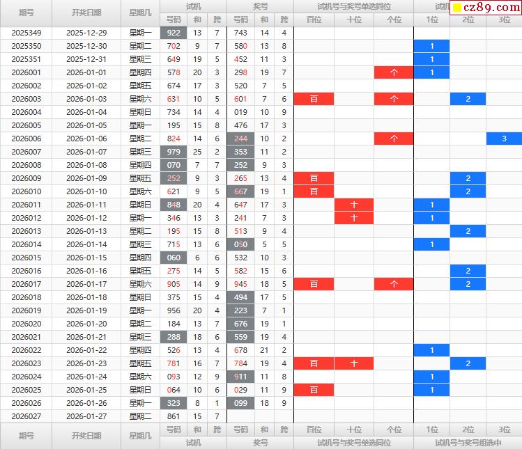 千禧3D试机号2026027期262关注数482金码4试机号对应码545