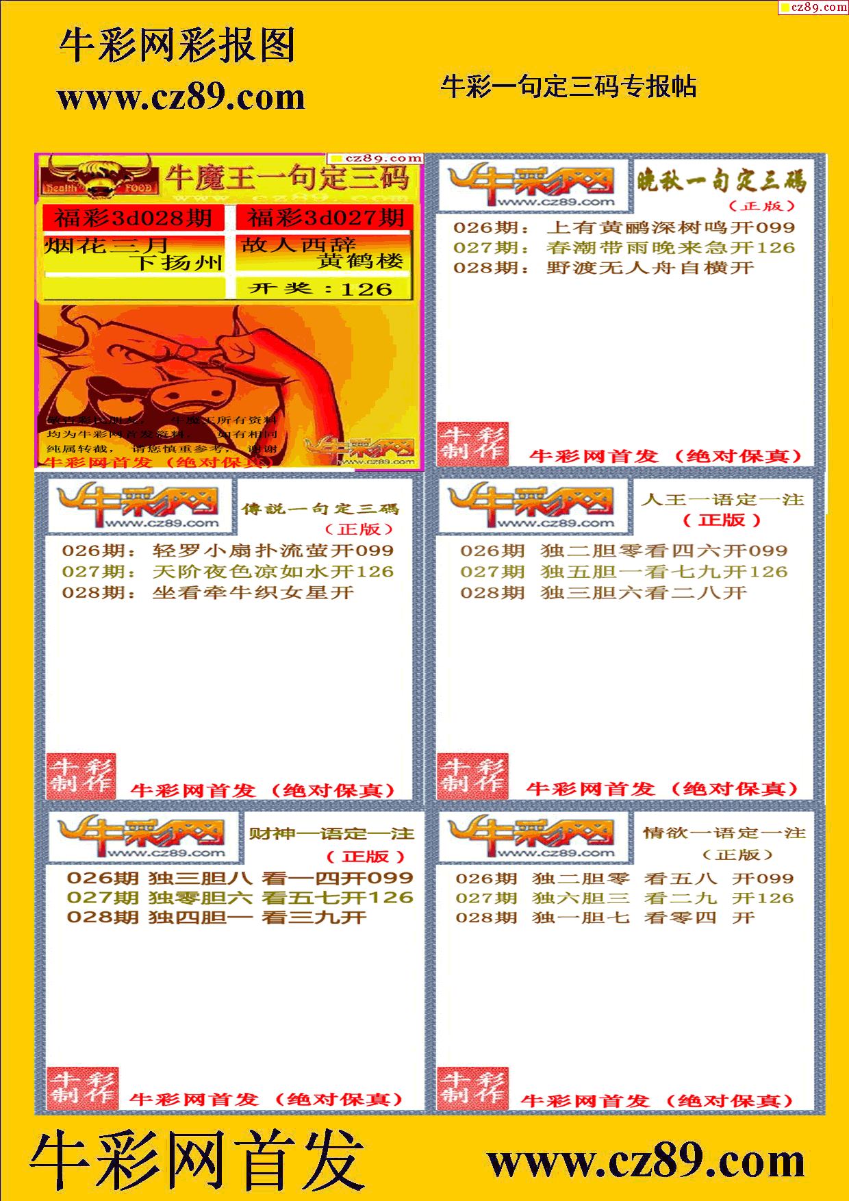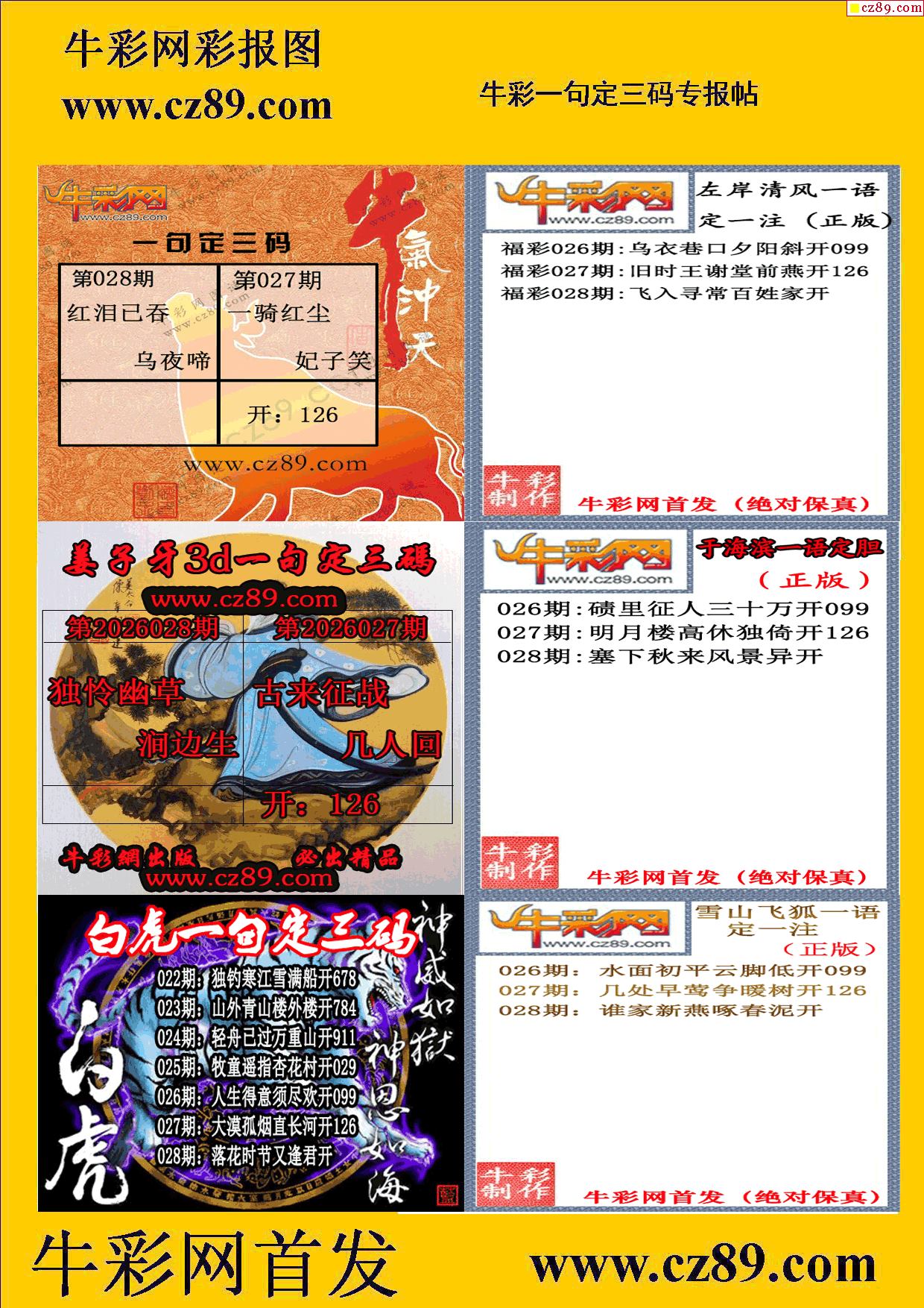 2026028期牛彩专家一句定三码彩报