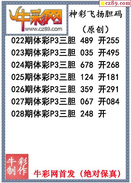 神彩飞扬三胆028期体彩P3图谜(原创)