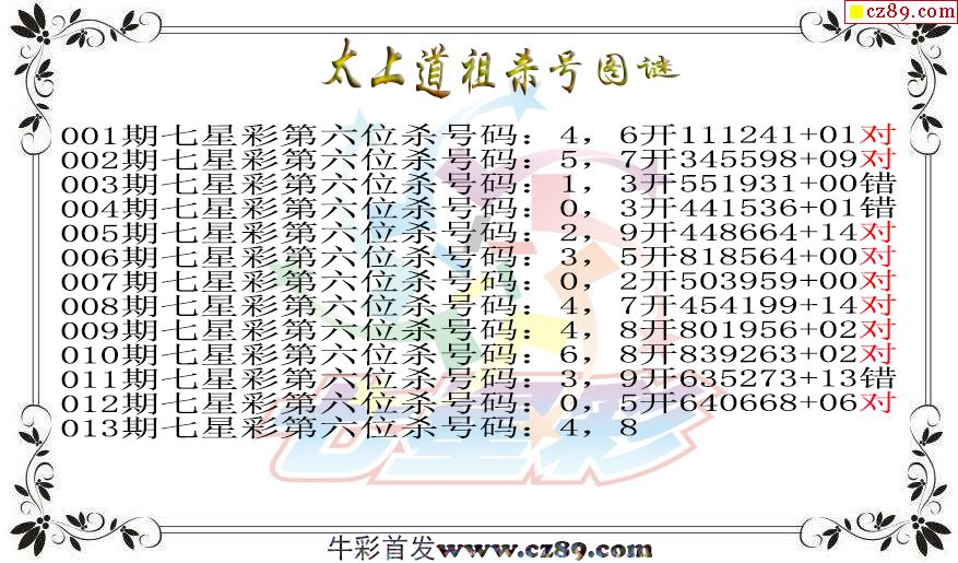 七星彩2026013期太上道祖杀号图谜 12中10