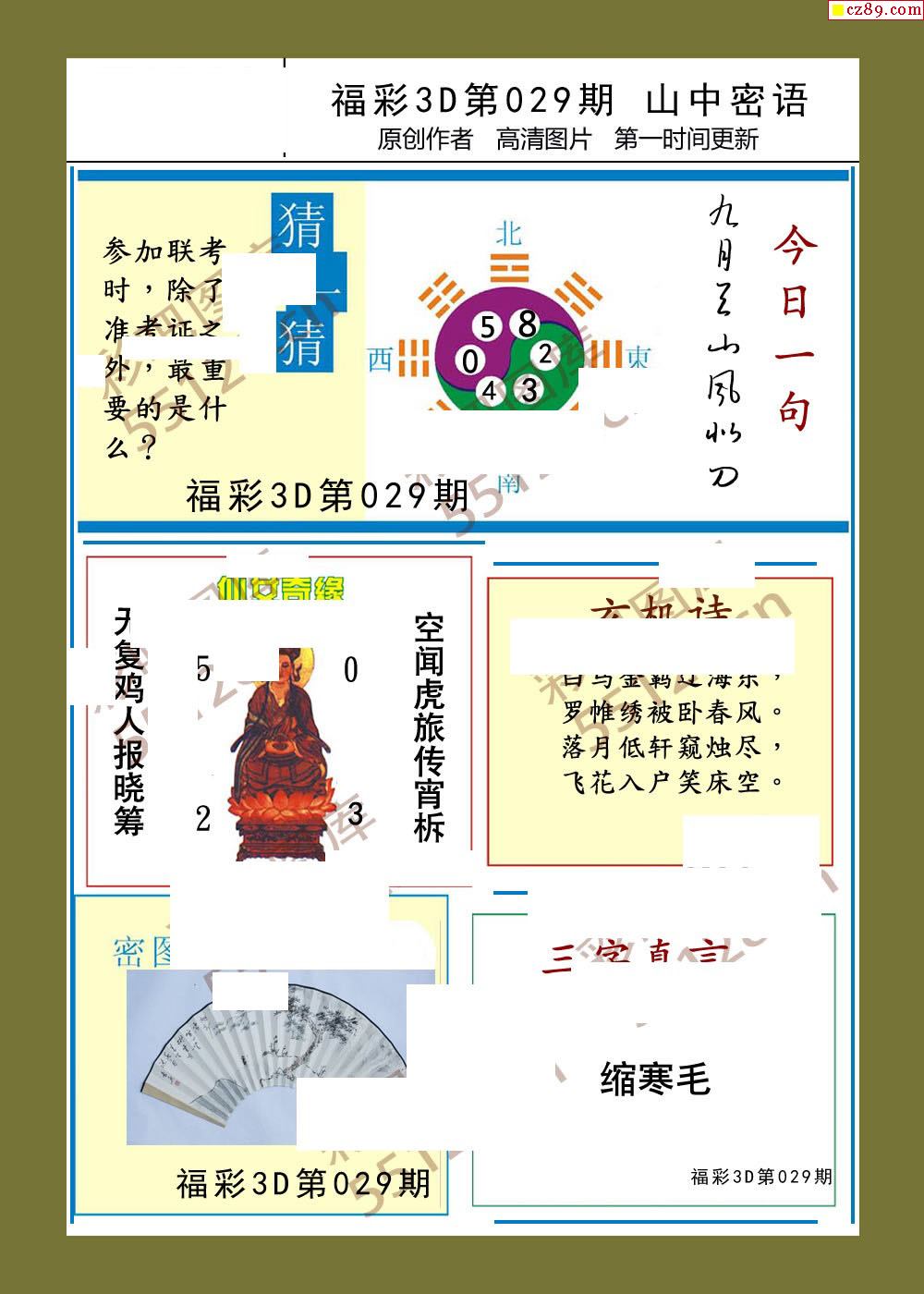 福彩3d26年029期山中密语彩报