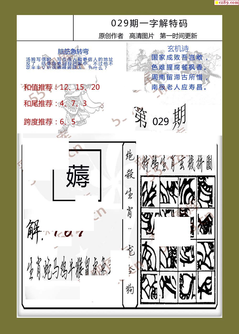 26年029期一字解特码福彩3d彩报