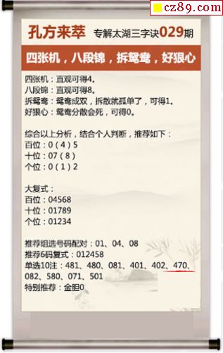 解谜大师26年029期太湖解释之 四张机