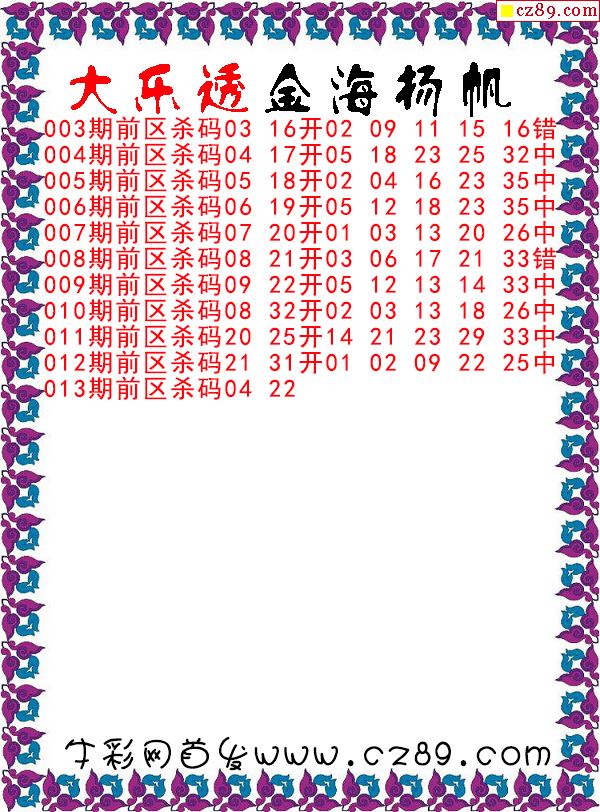 大乐透2026013期金海扬帆前区杀码图谜 10中8