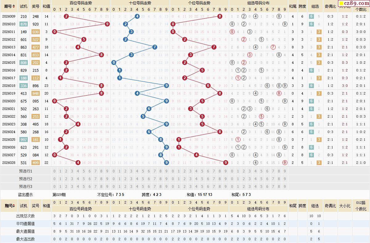 26年029期彩宝贝专家体彩P3杀号定码图表