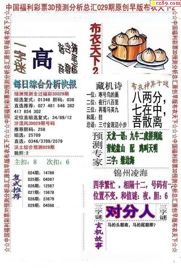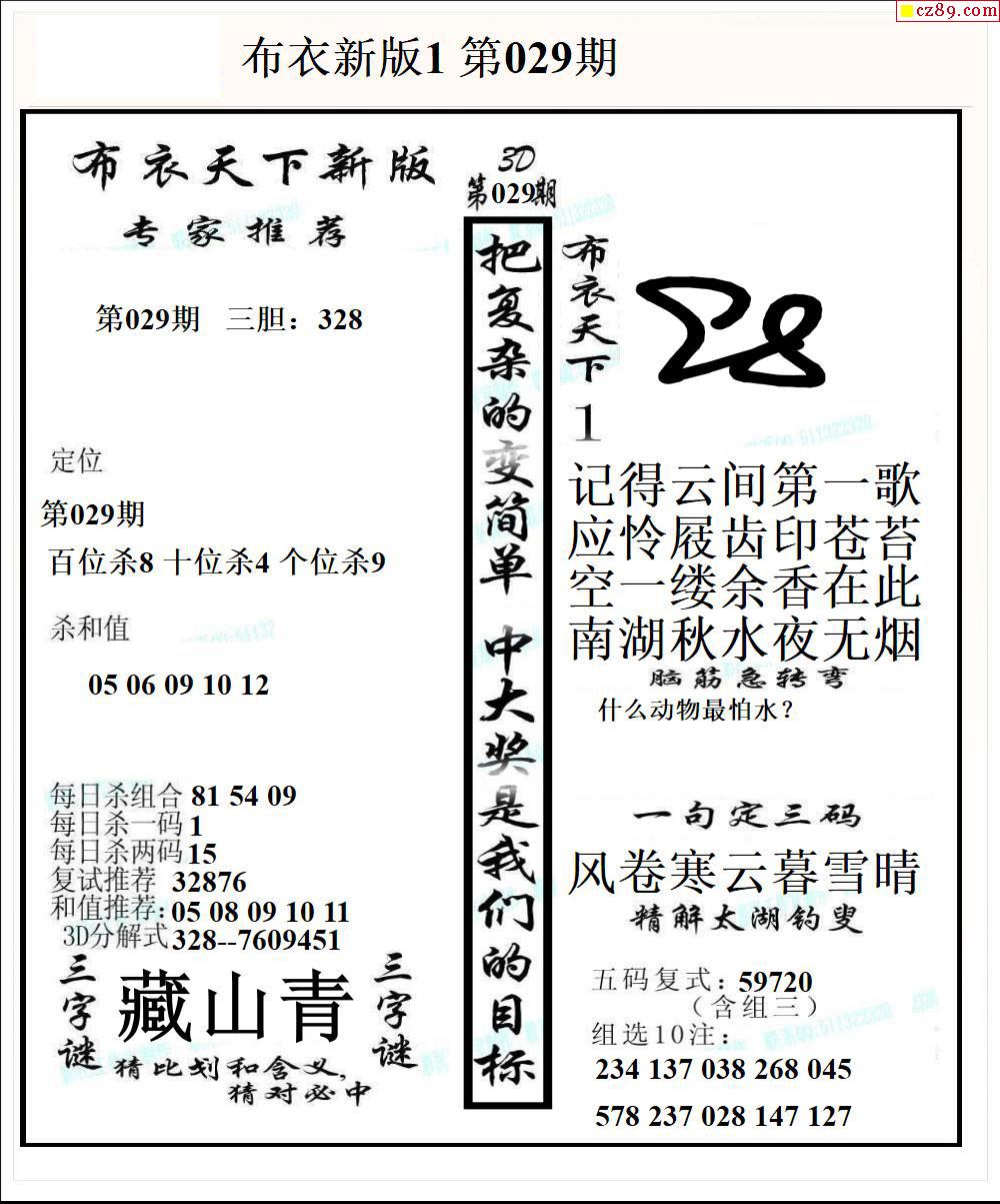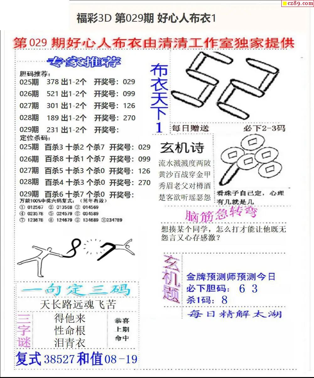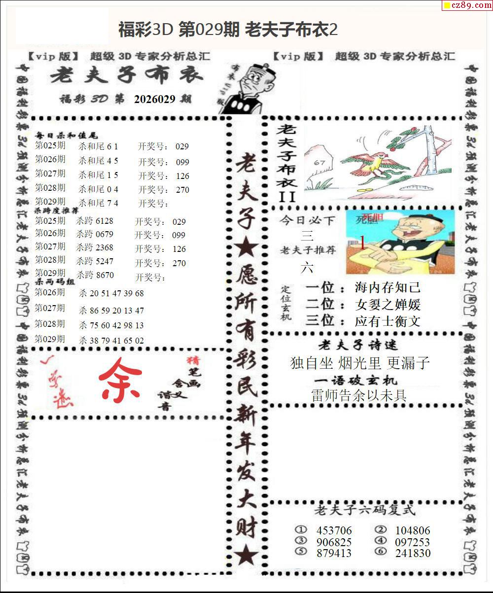 老夫子布衣2026029期3d图谜