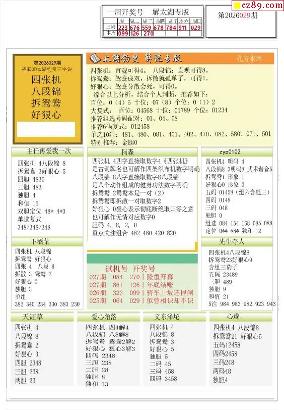 2026029期解太湖3d字图迷汇总报