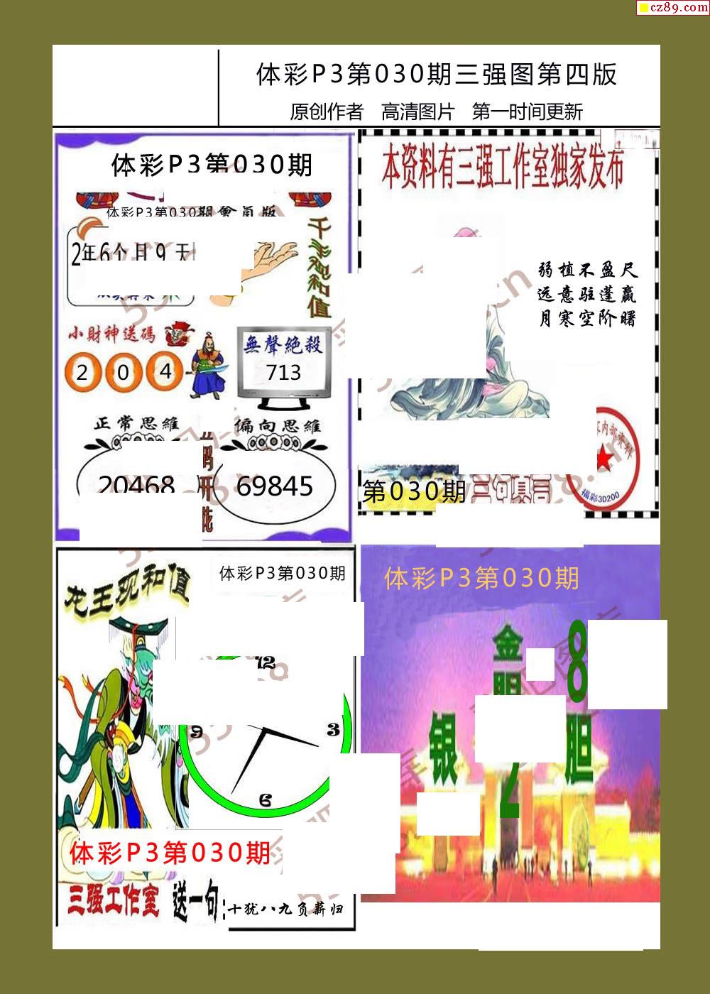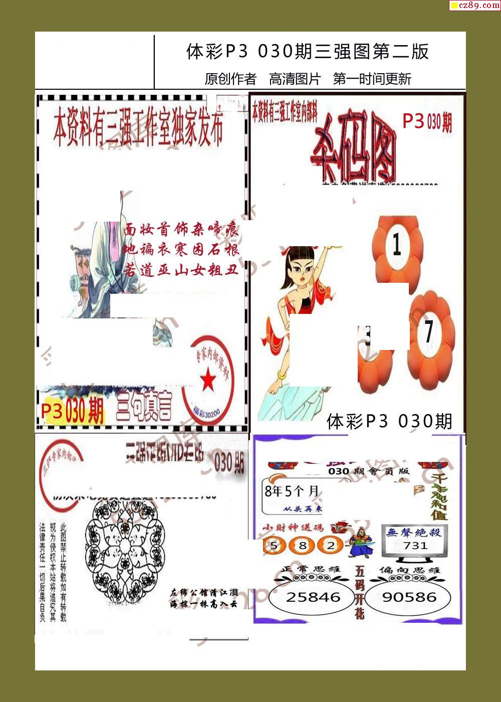 三强图系列030期体彩p3图谜