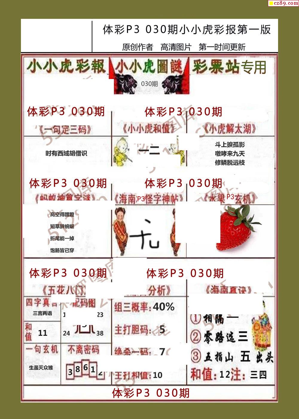 小小虎彩报030期体彩p3图谜