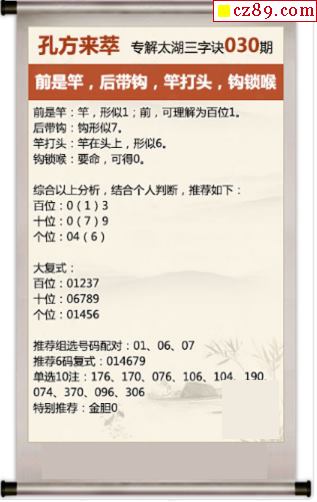 春琛破解3d030期太湖三原色 竿打头