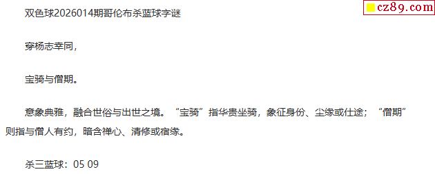 26年福彩双色球014期 哥伦布一句杀蓝球字谜