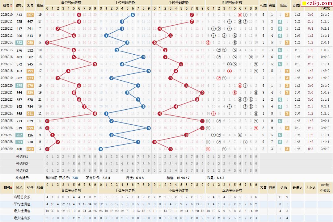 走 势:开奖号走势跨度走势和值走势