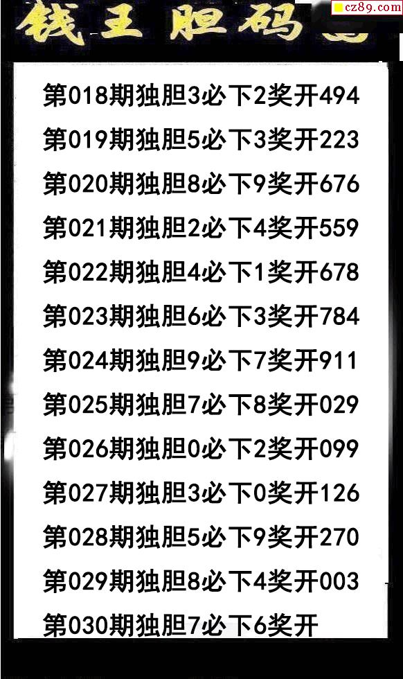 钱王胆码2026030期3d图谜