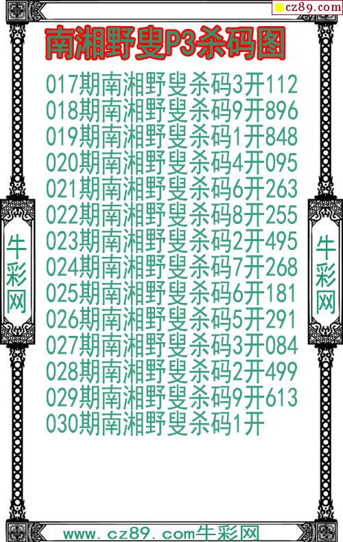 26年030期南湘野叟P3杀码图