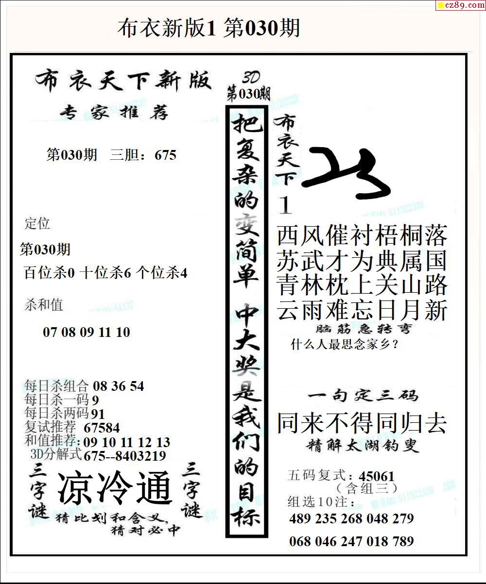 布衣天下新版2026030期3d图谜