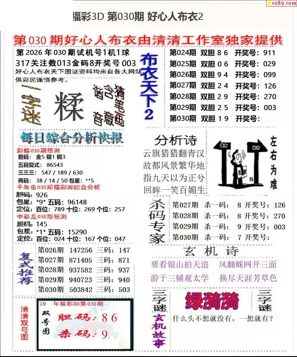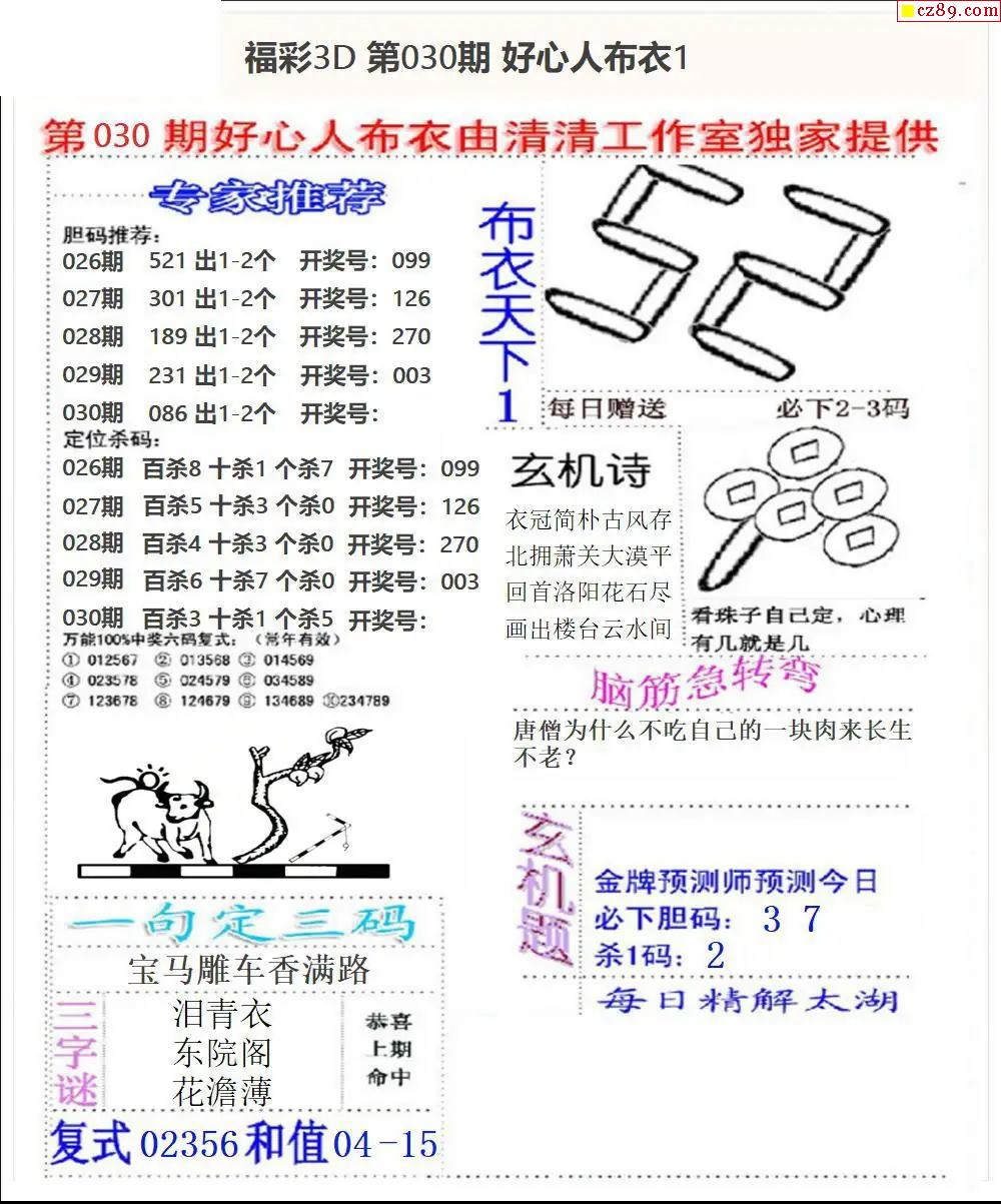 好心布衣2026030期3d图谜