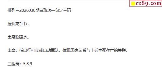 白玫瑰排三一句定三码26年030期