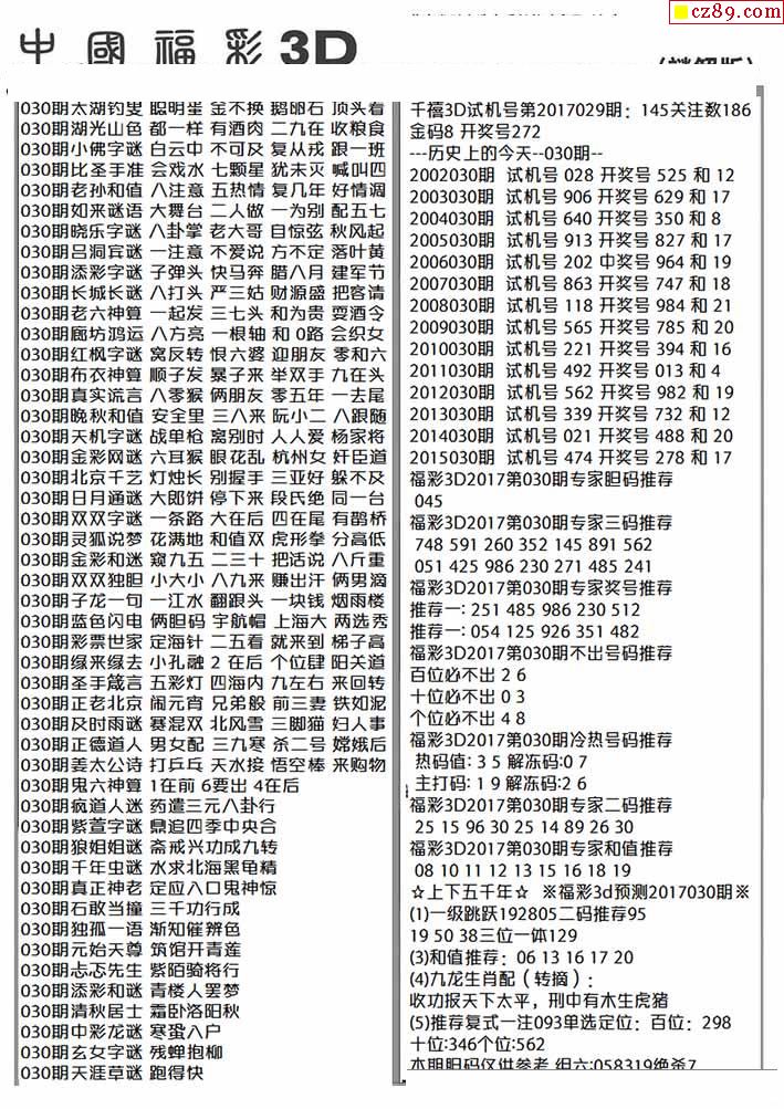 3D图谜: 3D胆码图 3D杀码图