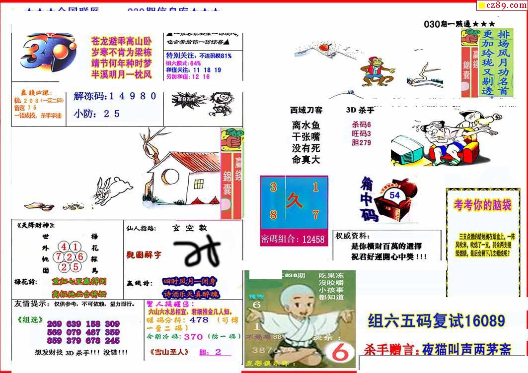 杀手+鑫马快报+字迷汇总26年030期3d图谜