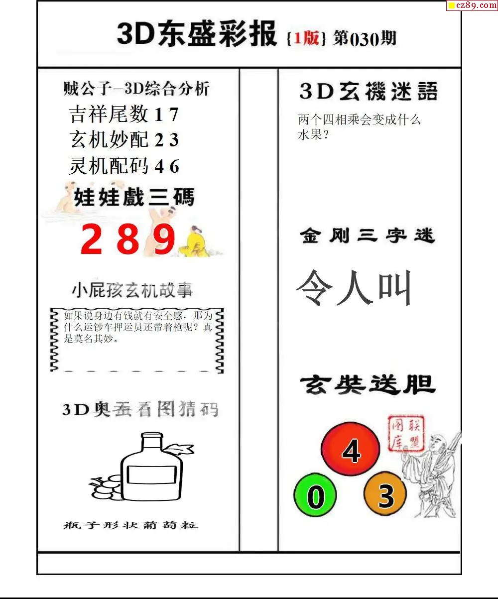福彩3D2026030期东盛彩报+精品三毛会员版