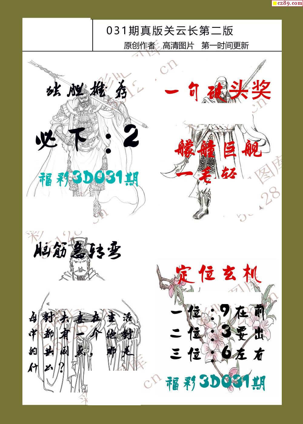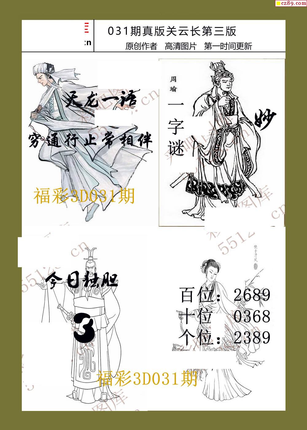 26年031期福彩3d真版关云长图谜
