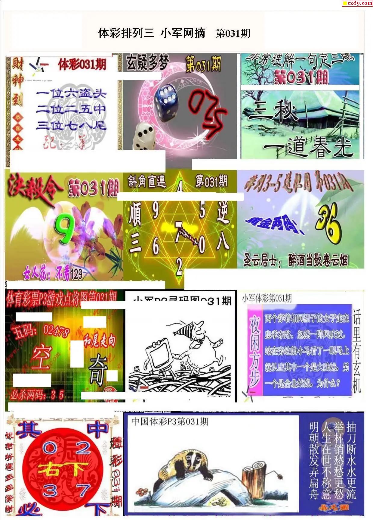 小军网摘26年031期体彩P3彩报图谜