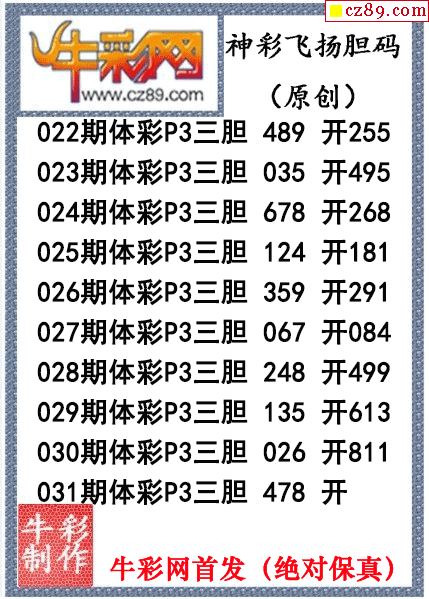海城胆神心跳一码031期体彩P3图谜