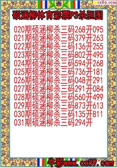 26年031期刘绍棠体彩排三杀码图