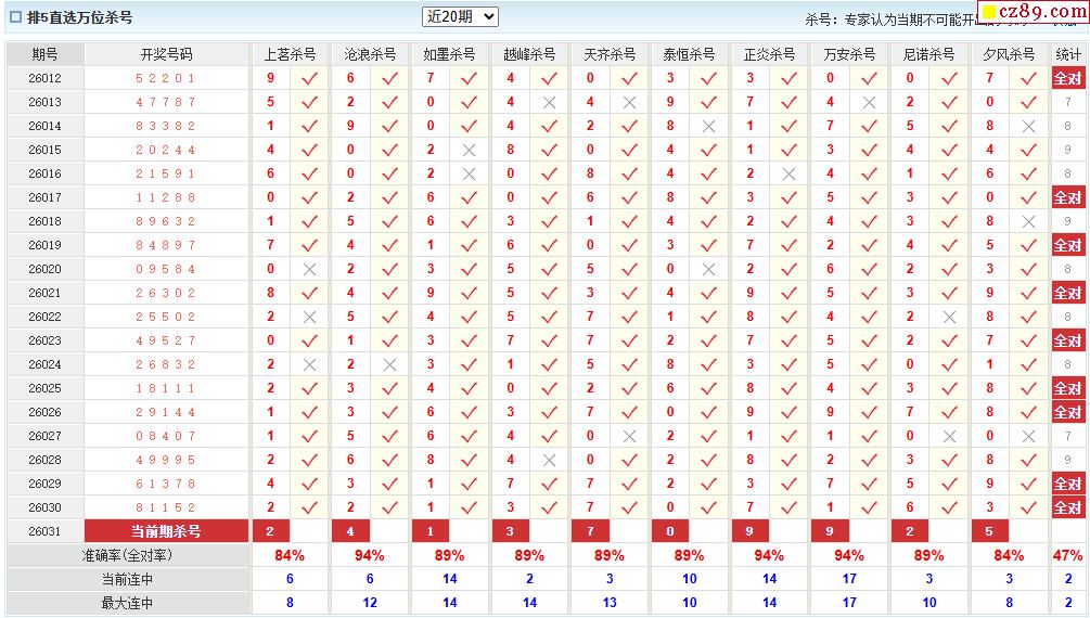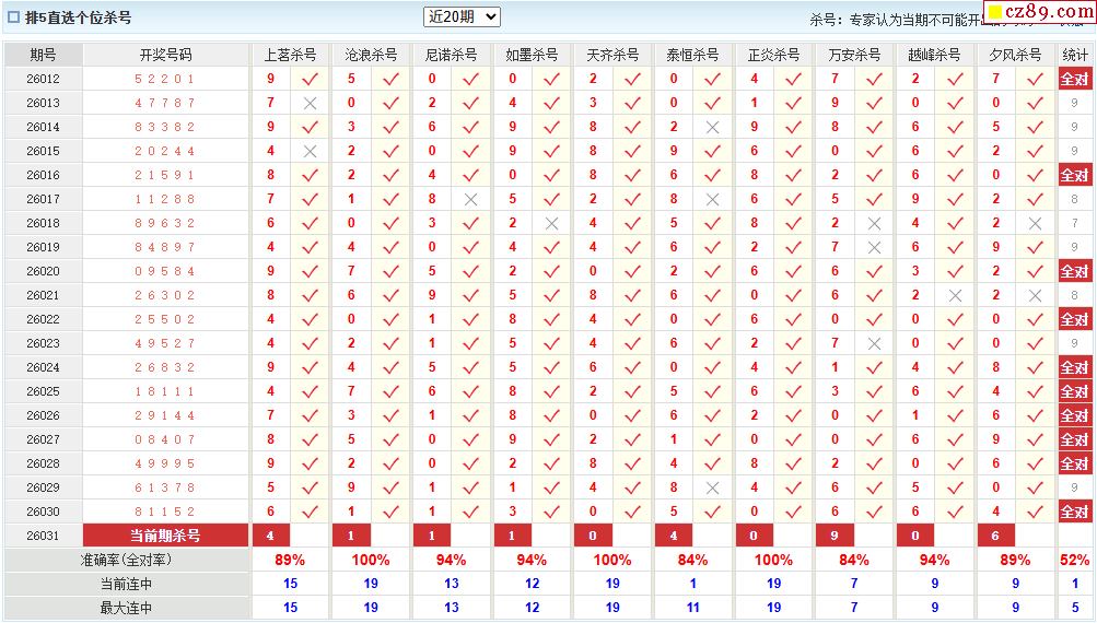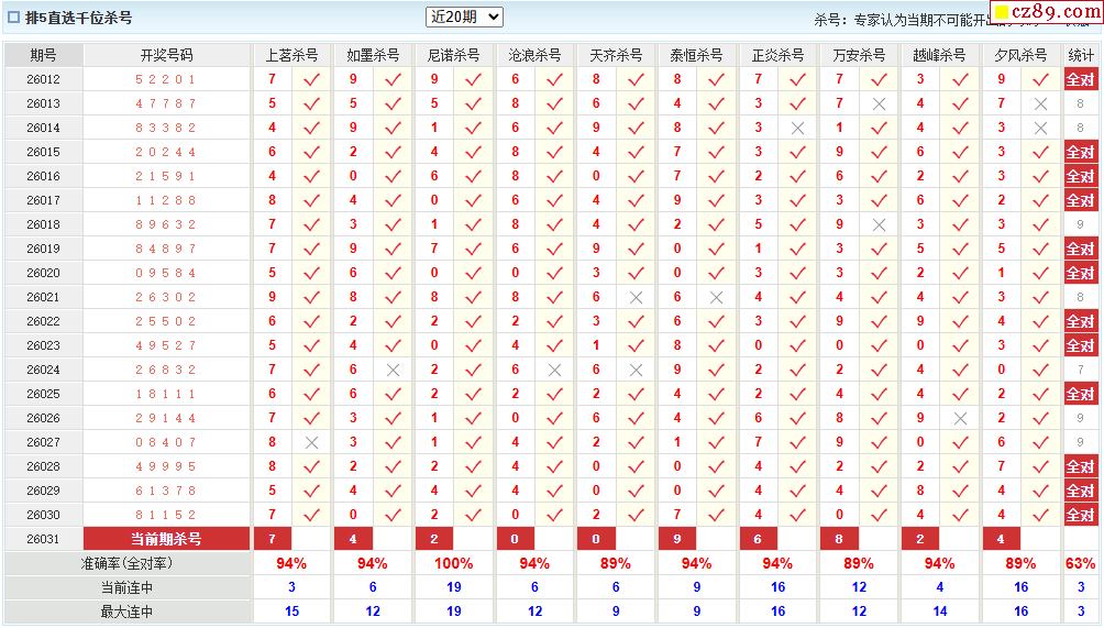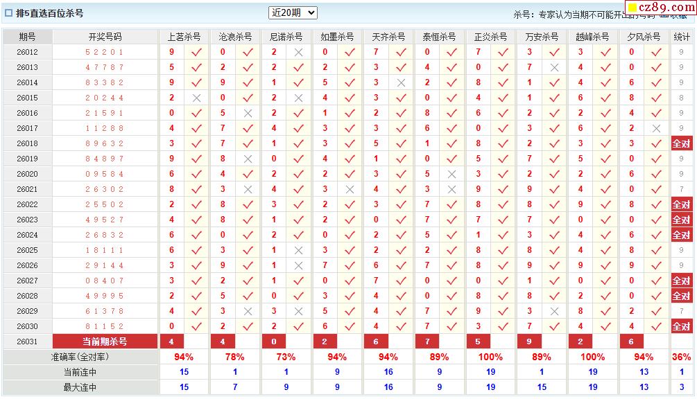 26年031期彩宝贝专家体彩P3杀号定码图表