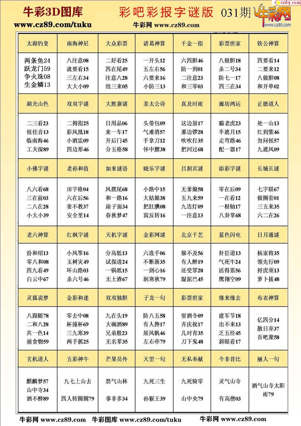 牛彩版3D字谜彩报图26年031期打印版