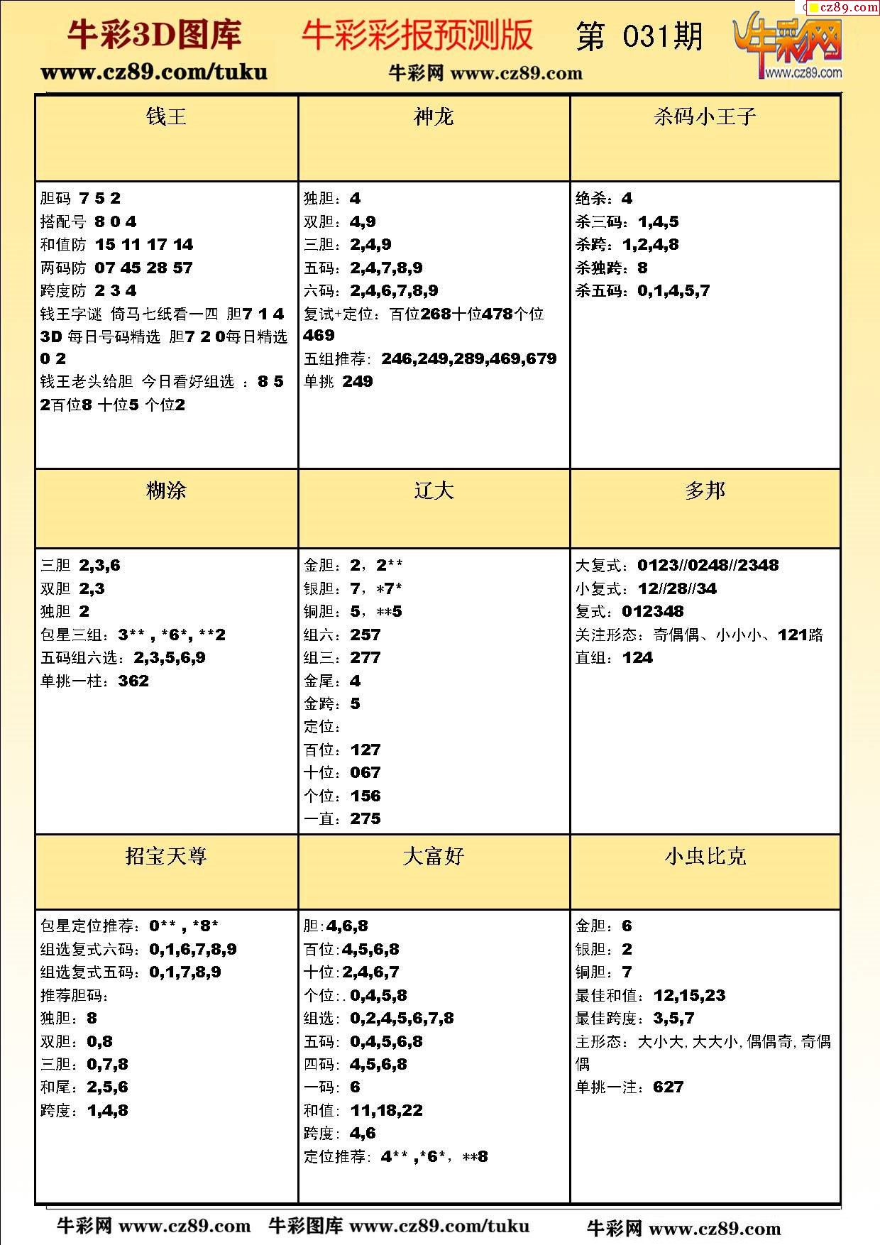 牛彩版3D字谜彩报图26年031期打印版