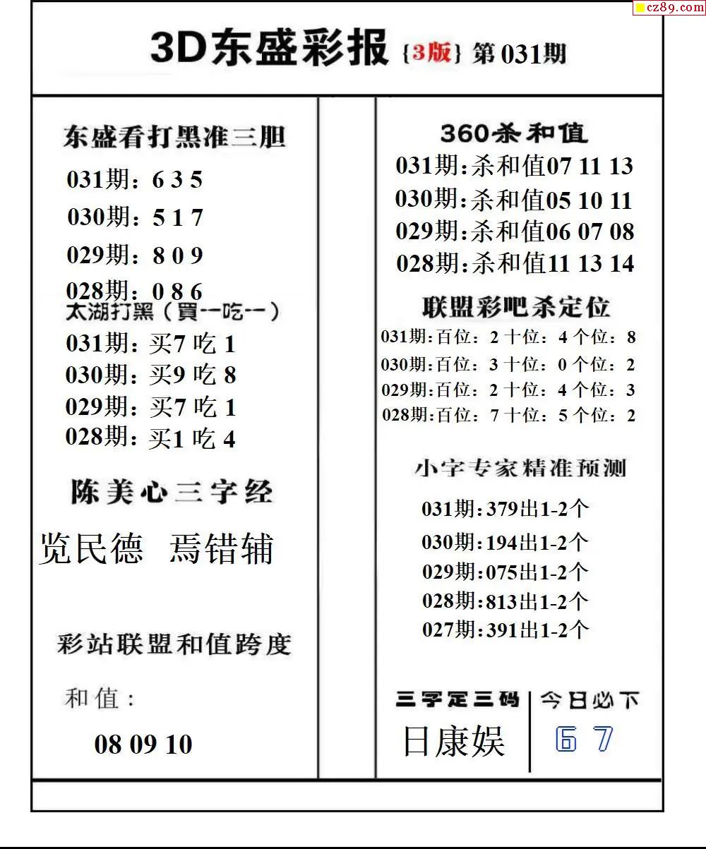 福彩3D2026031期东盛彩报+精品三毛会员版