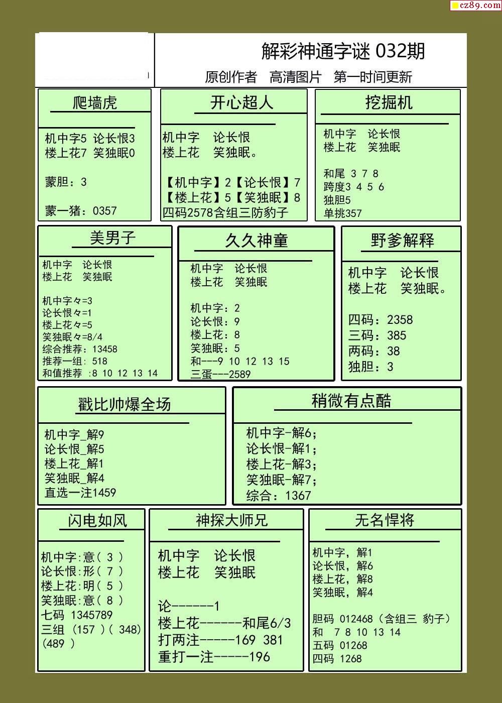 布衣怪字神贴2026032期3d图谜