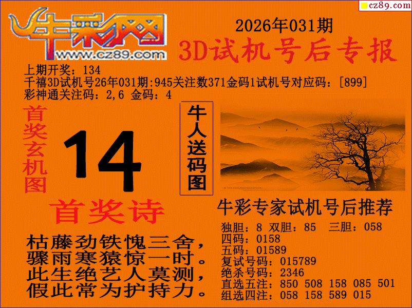 牛彩版3D预测彩报图26年031期打印版