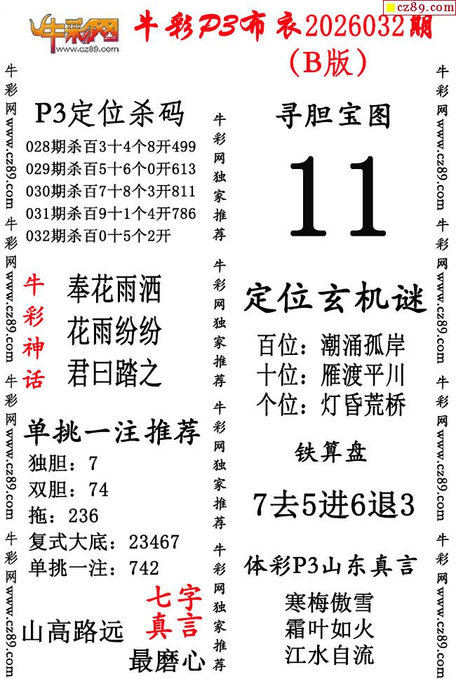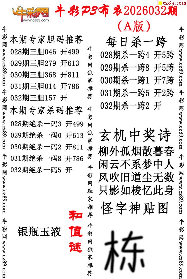 牛彩P3布衣26年032期AB版图谜(精华版)