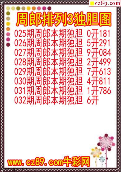 2026年032期牛彩网体彩P3画迷图谜汇总分享