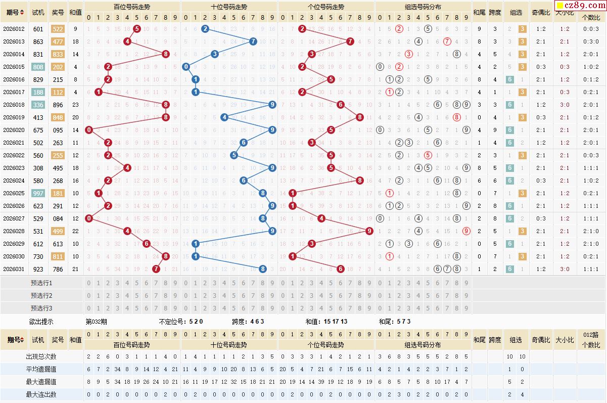 032期体彩排列3近期历史号码图表