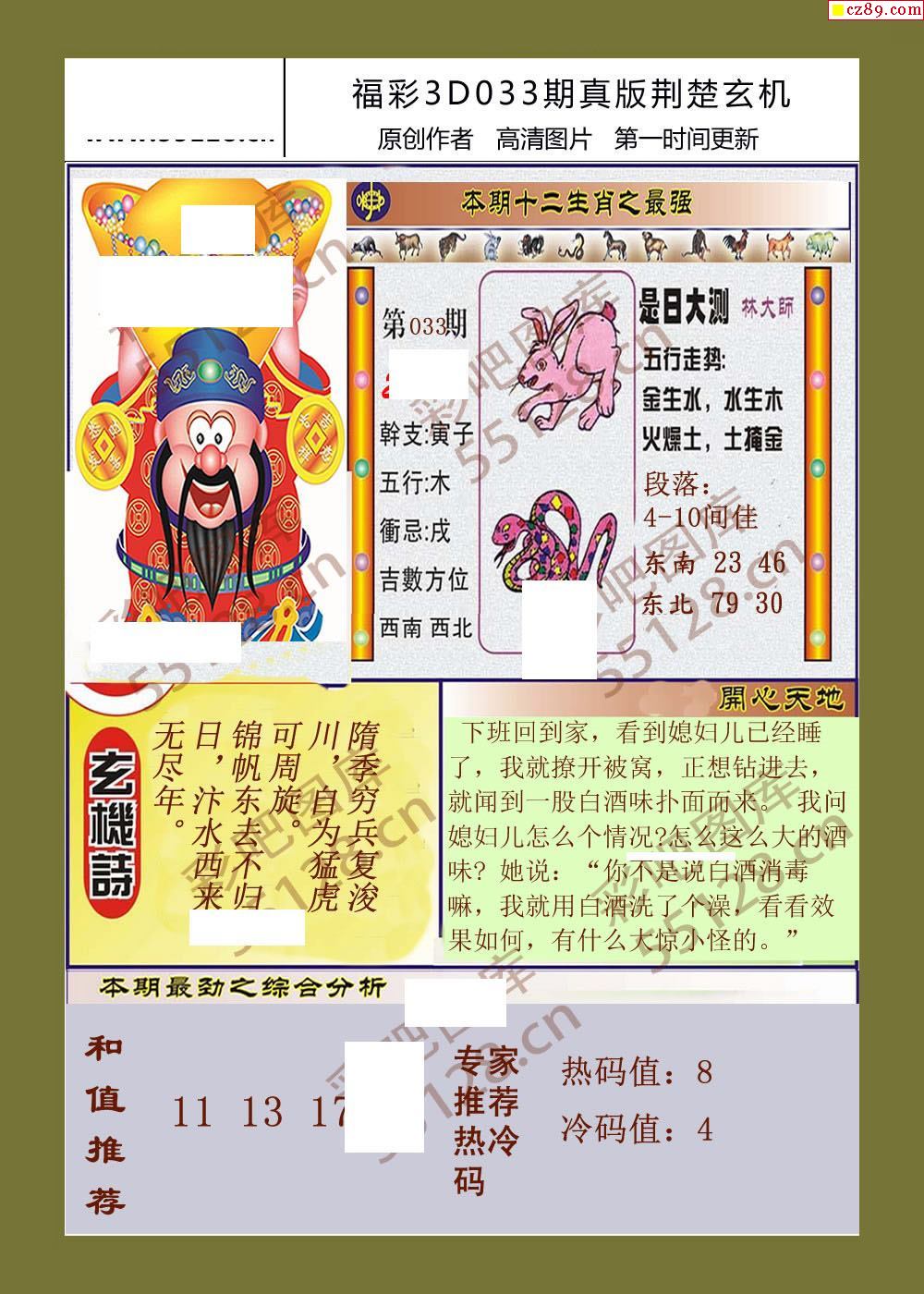 26福彩3d033期真版荆楚玄机彩报