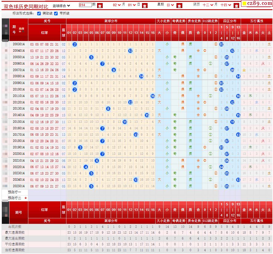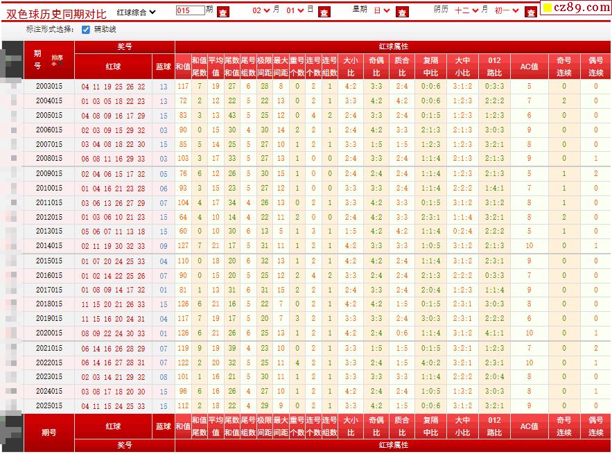 015期双色球历史同期对比图