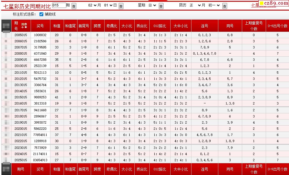 015期七星彩历史同期对比图