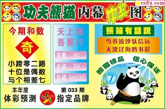 体彩P326年图迷033期 功夫熊猫内幕中奖图