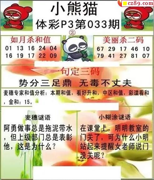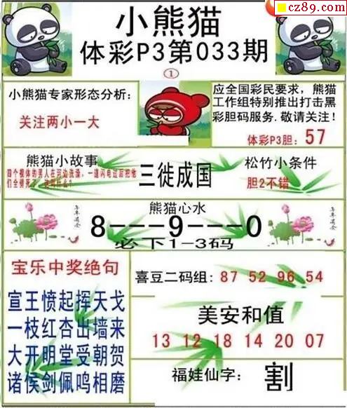 小熊猫2026033期体彩P3图谜